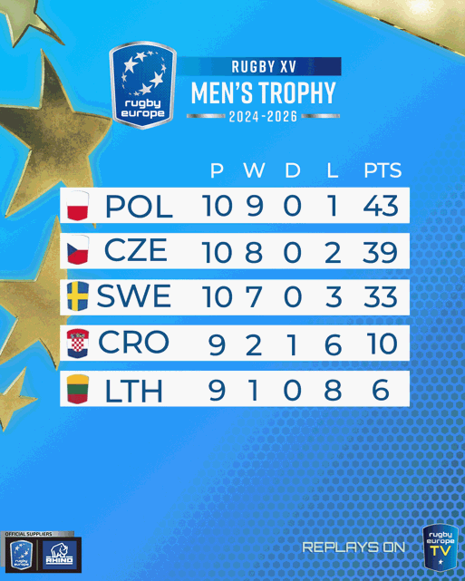 With one match of the 2025/26 Trophy iteration to go - sixth placed Croatia take on fifth placed Lithuania this coming weekend - Czechia are top, Poland are second, Sweden are third and Denmark are fourth.